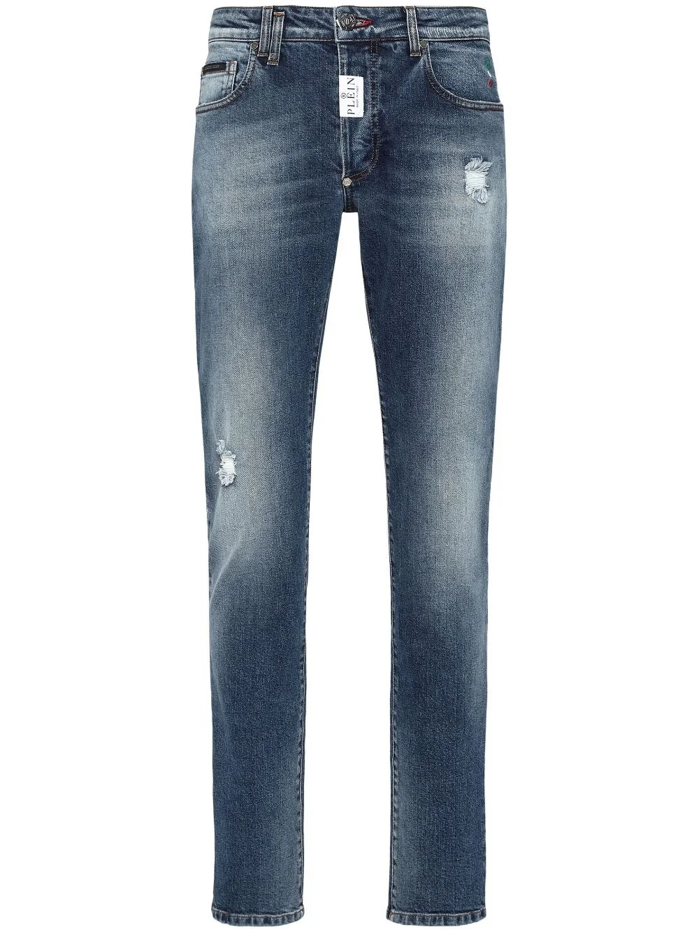 logo-patch straight-leg jeans Highlights - Indigo blue - Cotton - Denim - Logo patch to the front - Washed - Front button and zip fastening - Belt loops - Classic five pockets - Straight leg Made in Italy Composition Cotton 100% SIZE & FIT FittingInformation Designed for a slim fit, these jeans offer a comfortable fit that sits just away from the leg Constructed from stretch denim, this piece offers a stretch fit with durability