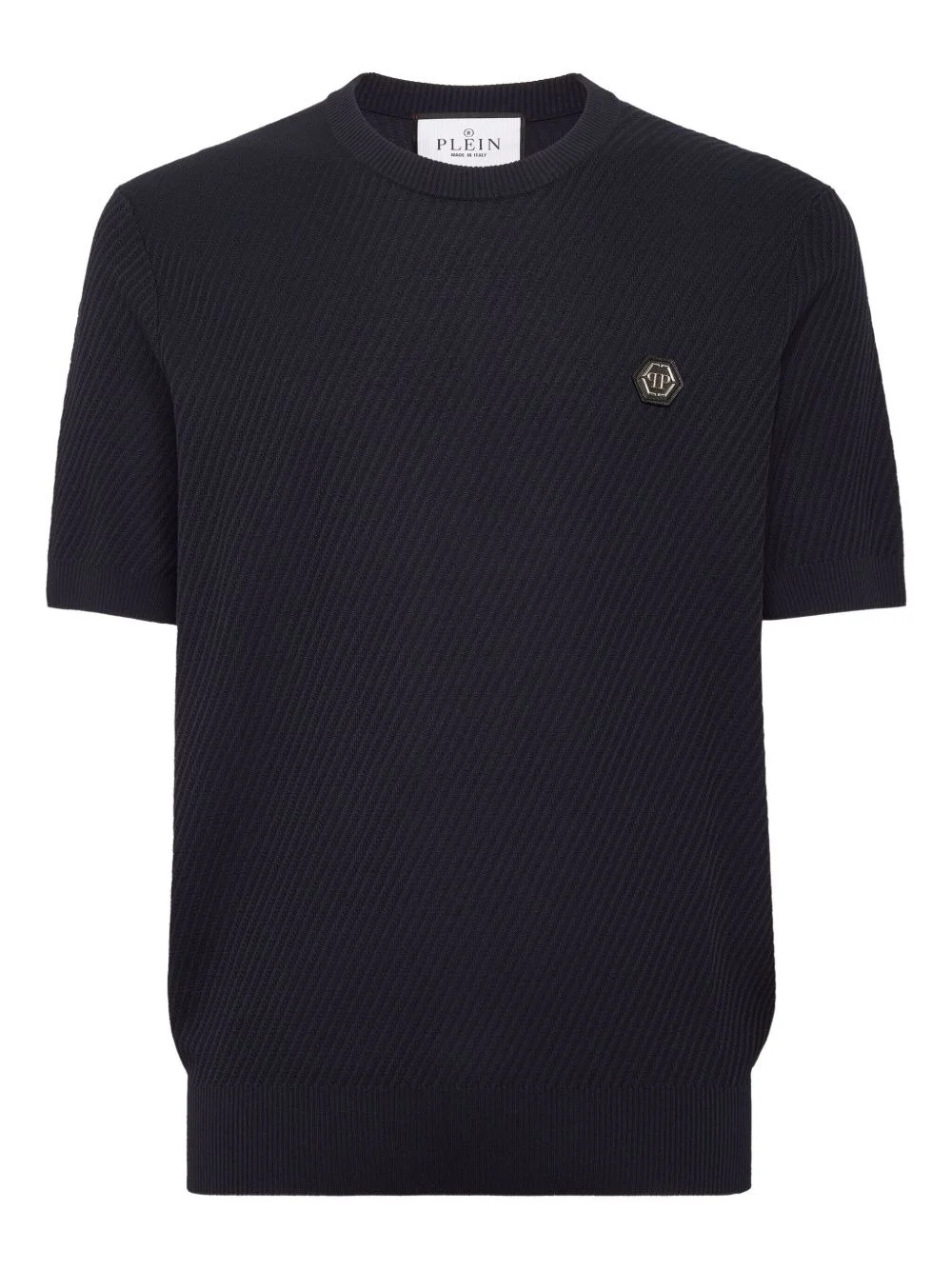 logo-patch T-shirt Highlights - Navy blue - Ribbed texture - Short sleeves - Logo patch detail - Crew neck Made in Italy Composition Merino 50%, Silk 50% Washing instructions Read Manufacturer Guidelines