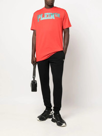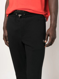 logo-patch track pants logo-patch track pants from PHILIPP PLEIN featuring jet black, cotton blend, logo patch to the side, elasticated waistband, two diagonal pockets to the sides and elasticated cuffs. Imported Composition Cotton 88%, Polyester 12% SIZE & FIT Model measurements Height 6 ft 0 in(1.84 m) Bust/Chest 35.82 in(91 cm) Hips 37 in(94 cm) Waist 28.34 in(72 cm)