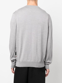 logo-patch V-neck sweater logo-patch V-neck sweater from PHILIPP PLEIN featuring light grey, logo patch to the front, V-neck, long sleeves and ribbed hem. Made in Italy Composition Fabric 100% SIZE & FIT Model measurements Height 6 ft 1 in(1.86 m) Bust/Chest 35.4 in(90 cm) Hips 34.6 in(88 cm) Waist 30.7 in(78 cm) FittingInformation This piece fits true to size. We recommend you get your regular size Cut for a slim fit Made with a mid-weight fabric