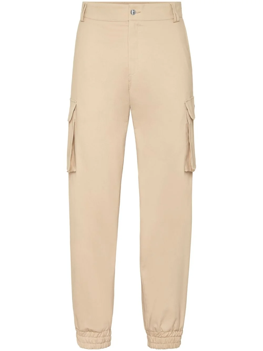 logo-plaque cargo pants Highlights - Almond beige - Concealed front fastening - Two side inset pockets - Two side cargo pockets - Two rear flap pockets Made in Italy Composition Outer: Cotton 97%, Elastane 3% Lining: Polyamide 65%, Cotton 35%