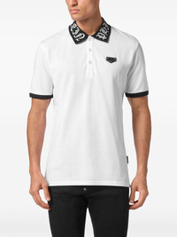 logo-plaque cotton polo shirt Highlights - White/black - Cotton - Pique weave - Polo collar - Front button placket - Silver-tone logo plaque - Contrasting border - Short sleeves - Straight hem Imported Composition Cotton 100%