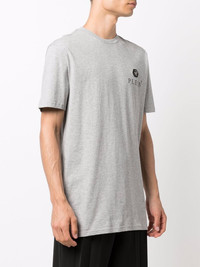 logo-plaque cotton T-shirt from PHILIPP PLEIN featuring grey, cotton, leather, logo plaque, crew neck, short sleeves and straight hem. Highlights - Grey - Cotton/leather - Logo plaque - Crew neck - Short sleeves - Straight hem Imported Composition Calf Leather 100%,Cotton 100%