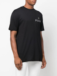 Hexagon logo-print T-shirt Hexagon logo-print T-shirt from PHILIPP PLEIN featuring jet black, cotton, logo patch to the front, logo print to the front, round neck, short sleeves and straight hem. Imported Composition Cotton 100% SIZE & FIT Model measurements Height 6 ft 1 in(1.85 m) Bust/Chest 33.5 in(85 cm) Hips 38.2 in(97 cm) Waist 31.5 in(80 cm) FittingInformation This piece fits true to size. We recommend you get your regular size Cut for a relaxed fit Made with a mid-weight fabric
