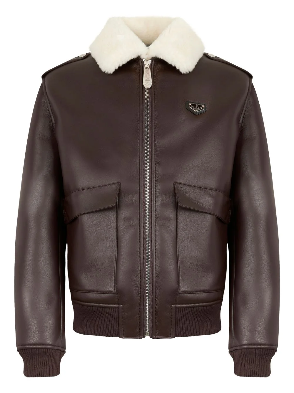 logo-plaque jacket Highlights - Brown - Faux fur collar - Metal logo plaque - Zip fastening - Ribbed hem - Shoulder epaulettes Imported Composition Polyester 100%, Polyurethane 100%