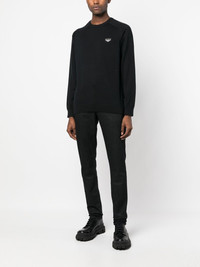 logo-plaque jumper black cotton logo plaque round neck long sleeves ribbed cuffs ribbed hem Imported Composition Cotton 100% SIZE & FIT Model measurements Height 6 ft 2 in(1.88 m) Bust/Chest 36.61 in(93 cm) Hips 35.82 in(91 cm) Waist 27.95 in(71 cm) FittingInformation This piece fits true to size. We recommend you get your regular size Cut for a relaxed fit Made with a mid-weight fabric Washing instructions Hand Wash