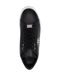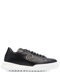 logo-plaque low-top sneakers Philipp Plein diverts from their typically maximalist aesthetic when presenting these low-top leather sneakers. Designed in a classic monochromatic colour palette, the pair are simply branded with a polished silver-tone logo plaque to the side. Made in Italy Composition Lining: Calf Leather 100% Outer: Calf Leather 100% Sole: Rubber 100% SIZE & FIT Measurement HEEL 1.6 in(4 cm) Sole height 1 in(2.5 cm)