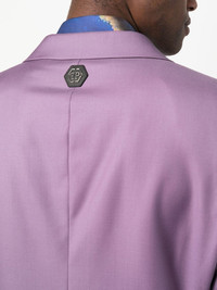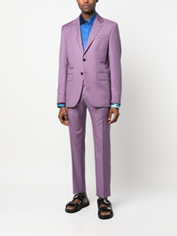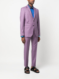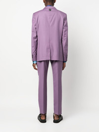 logo-plaque single-breasted suit lilac purple Jacket: logo plaque classic lapels front button fastening chest welt pocket two side flap pockets long sleeves Trousers: concealed front fastening two diagonal pockets to the sides tapered leg Made in Italy Composition Lining: Viscose 51%, Acetate 49% Outer: Polyester 53%, Wool 43%, Elastane 4% SIZE & FIT Model measurements Height 6 ft 2 in(1.88 m) Bust/Chest 36.61 in(93 cm) Hips 35.82 in(91 cm) Waist 27.95 in(71 cm) Washing instructions Dry Clean Only