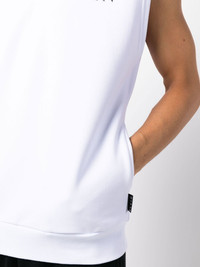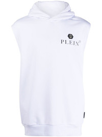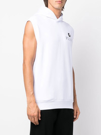 logo-print sleeveless hoodie logo-print sleeveless hoodie from PHILIPP PLEIN featuring cloud white, cotton blend, logo print at the chest, classic hood, sleeveless and straight hem. Imported Composition Cotton 88%, Polyester 12% SIZE & FIT Model measurements Height 6 ft 2 in(1.89 m) Bust/Chest 37.79 in(96 cm) Hips 37 in(94 cm) Waist 29.92 in(76 cm) FittingInformation This piece fits true to size. We recommend you get your regular size Cut for a relaxed fit Made with a mid-weight fabric Washing instructions Machine Wash