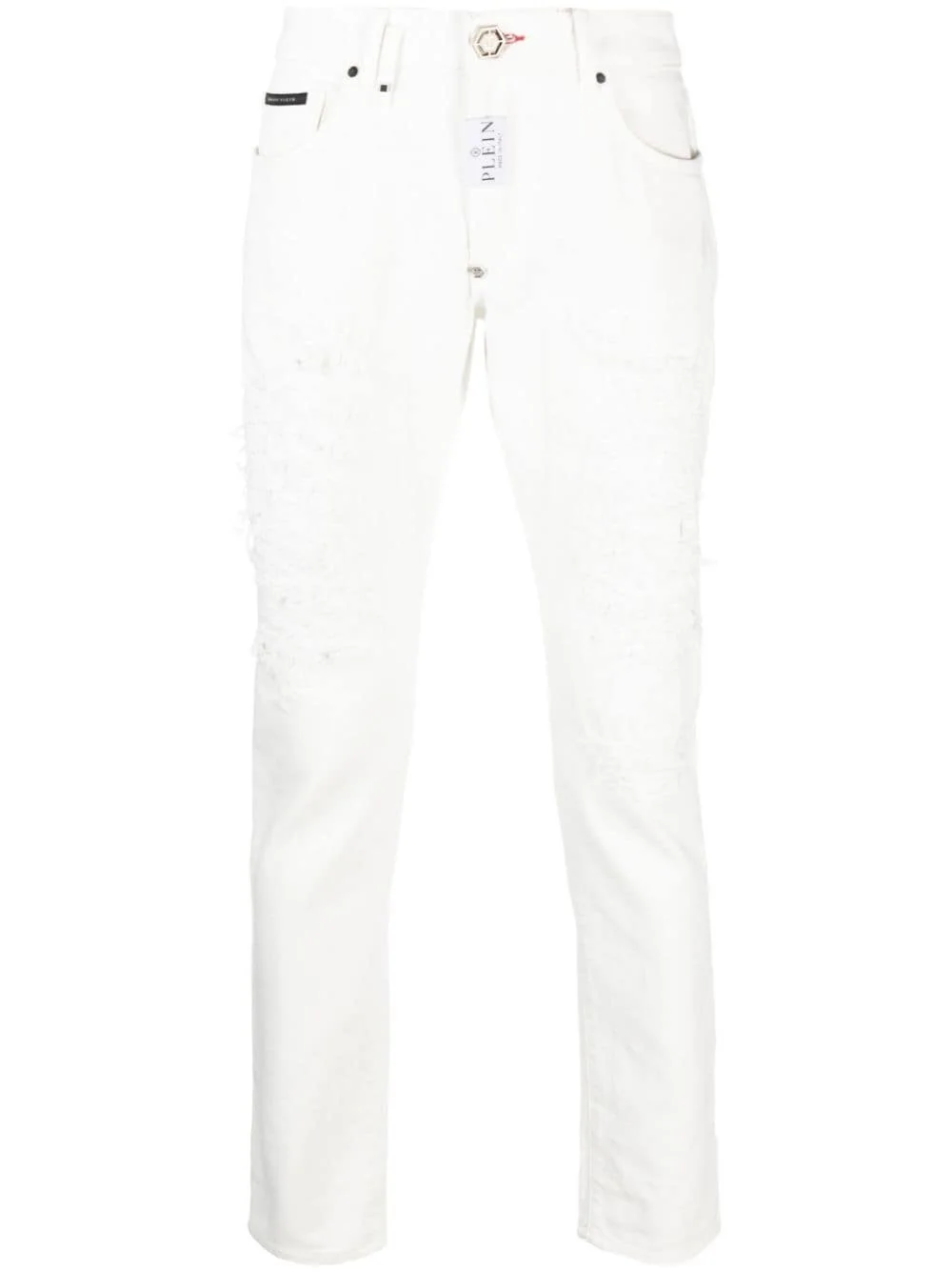 distressed straight-leg jeans Highlights - White - Cotton - Denim - Distressed finish - Logo tag - Logo patch to the rear - Belt loops - Front button and zip fastening - Classic five pockets - Straight leg - Straight hem Made in Italy Composition Outer: Cotton 100% Lining: Cotton 100% SIZE & FIT Model measurements Height 6 ft 1 in(1.86 m) Bust/Chest 36.61 in(93 cm) Hips 37 in(94 cm) Waist 28.74 in(73 cm) FittingInformation Designed for a slim fit, these jeans offer a comfortable fit that sits just away from the leg Sturdy and hard-wearing, this denim piece offers no stretch This piece fits true to size – take your usual size