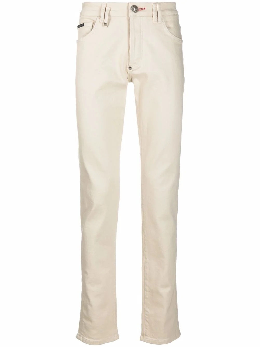 logo-plaque slim-fit jeans creamy beige cotton-blend belt loops button fly fastening tonal stitching logo-embroidered edge silver-tone logo plaque logo patch to the front logo patch to the rear slim cut Imported Composition Lining: Polyester 80%, Cotton 20% Outer: Cotton 98%, Spandex/Elastane 2% SIZE & FIT Model measurements Height 6 ft 1 in(1.85 m) Bust/Chest 38.58 in(98 cm) Hips 37 in(94 cm) Waist 30.31 in(77 cm) FittingInformation This piece fits true to size. We recommend you get your regular size Cut for a slim fit Made with a mid-weight stretch fabric Washing instructions Machine Wash