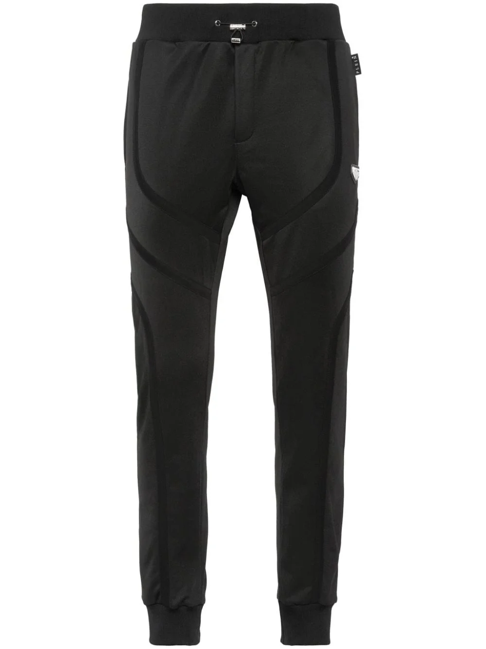 logo-plaque track pants Highlights - Black - Silver-tone logo plaque - Elasticated drawstring waistband - Two side inset pockets - Mini logo tag - Panelled design - Elasticated ankles - Straight leg Imported Composition Polyester 100%