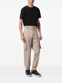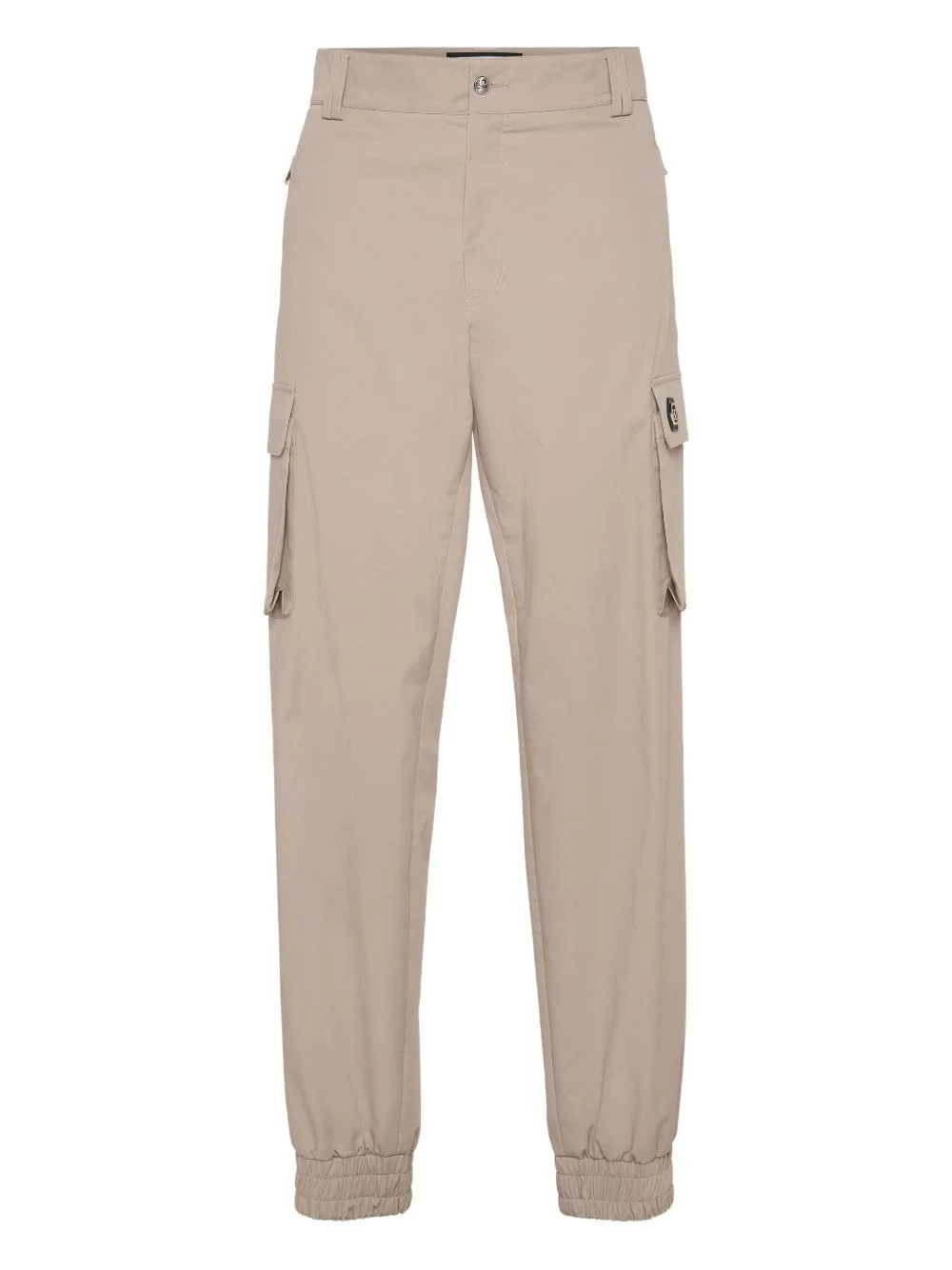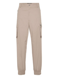 logo-plaque trousers Highlights - Sand beige - Front button fastening - Two side slit pockets - Two side cargo pockets - Elasticated ankles Made in Italy Composition Outer: Cotton 98%, Elastane 2% Lining: Polyester 65%, Cotton 35% Washing instructions Read Manufacturer Guidelines