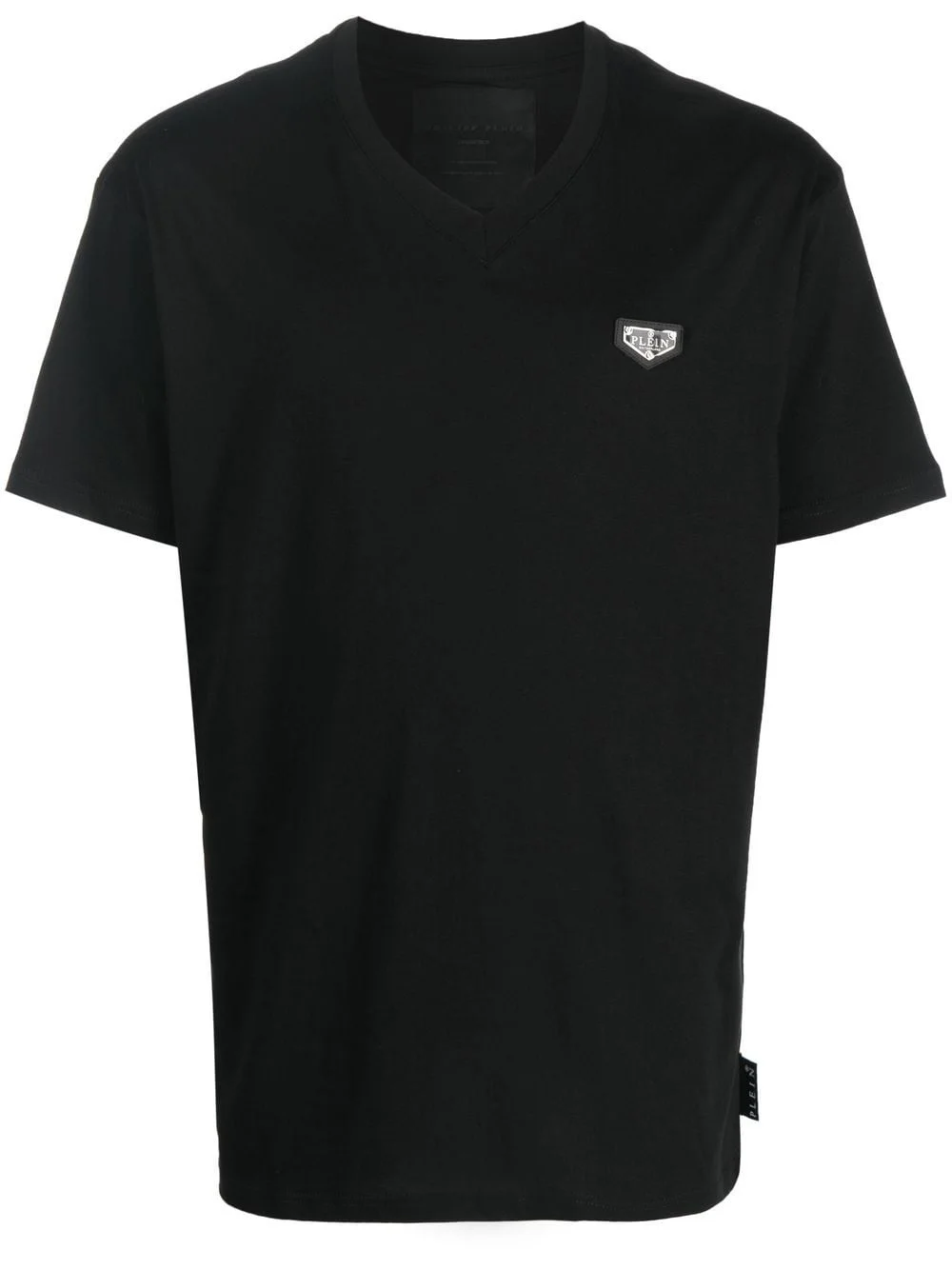 logo-plaque V-neck T-shirt Highlights - Black - Cotton - Logo plaque at the chest - Logo tag to the side - V-neck - Short sleeves - Straight hem Imported Composition Cotton 100% Washing instructions Machine Wash