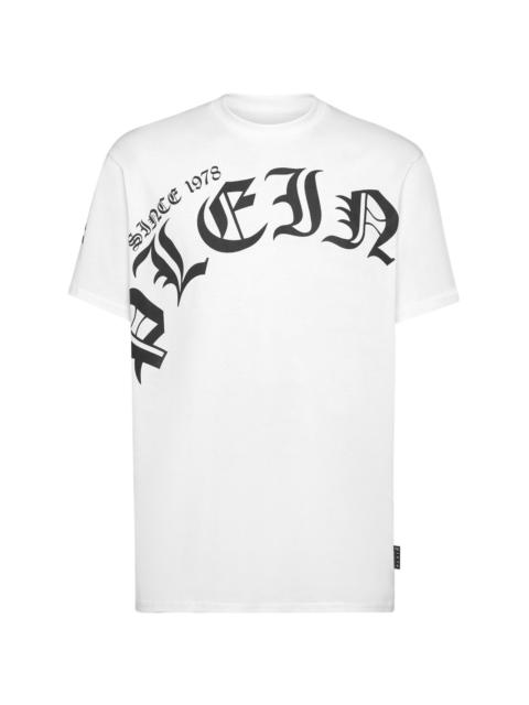 logo-print cotton T-shirt Highlights - White - Cotton - Logo print to the front - Gothic print - Round neck - Short sleeves - Straight hem Imported Composition Cotton 100% SIZE & FIT FittingInformation Designed for a relaxed fit, this piece allows for comfort and movement when worn Made from a midweight non-stretch fabric, this piece offers minimal elasticity when worn This piece fits true to size – take your usual size
