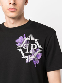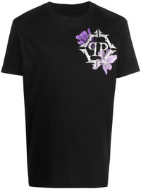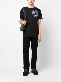 logo-print cotton T-shirt Highlights - Black/silver-tone/purple - Floral print - Logo print at the chest - Logo plaque - Crew neck - Short sleeves - Straight hem Made in Italy Composition Cotton 100% SIZE & FIT Model measurements Height 6 ft 2 in(1.87 m) Bust/Chest 36.41 in(92.5 cm) Hips 35.43 in(90 cm) Waist 29.52 in(75 cm) FittingInformation Designed for a relaxed fit, this piece allows for comfort and movement when worn Made from a midweight non-stretch fabric, this piece offers minimal elasticity when worn This piece fits true to size – take your usual size
