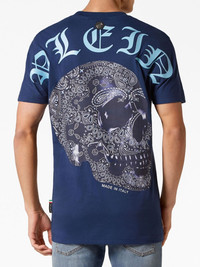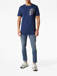 logo-print cotton T-shirt Highlights - Blue - Cotton - Logo print to the rear - Skull print - Round neck - Short sleeves - Straight hem Made in Italy Composition Cotton 100% SIZE & FIT FittingInformation Designed for a relaxed fit, this piece allows for comfort and movement when worn Made from a midweight non-stretch fabric, this piece offers minimal elasticity when worn This piece fits true to size – take your usual size
