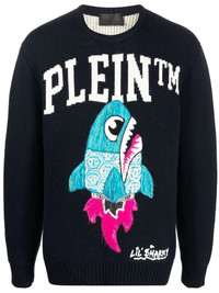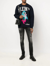 logo-print crew neck jumper logo-print crew neck jumper from PHILIPP PLEIN featuring black/multicolour, merino wool, logo print to the front, graphic print at the chest, crew neck, long sleeves and ribbed hem. Made in Italy Composition Merino 100% SIZE & FIT Model measurements Height 6 ft 2 in(1.89 m) Bust/Chest 35.43 in(90 cm) Hips 38.58 in(98 cm) Waist 27.95 in(71 cm) FittingInformation This piece fits true to size. We recommend you get your regular size Cut for a relaxed fit Made with a mid-weight fabric Washing instructions Dry Clean Only