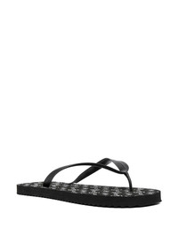logo-print flip flops black/white two-tone design all-over logo print slip-on style round toe Imported Composition Sole: Polyethylene vinyl acetate (PEVA) 100% Outer: Polyurethane 100% Lining: Polyurethane 100% SIZE & FIT Measurement HEEL 0.59 in(1.5 cm)