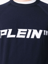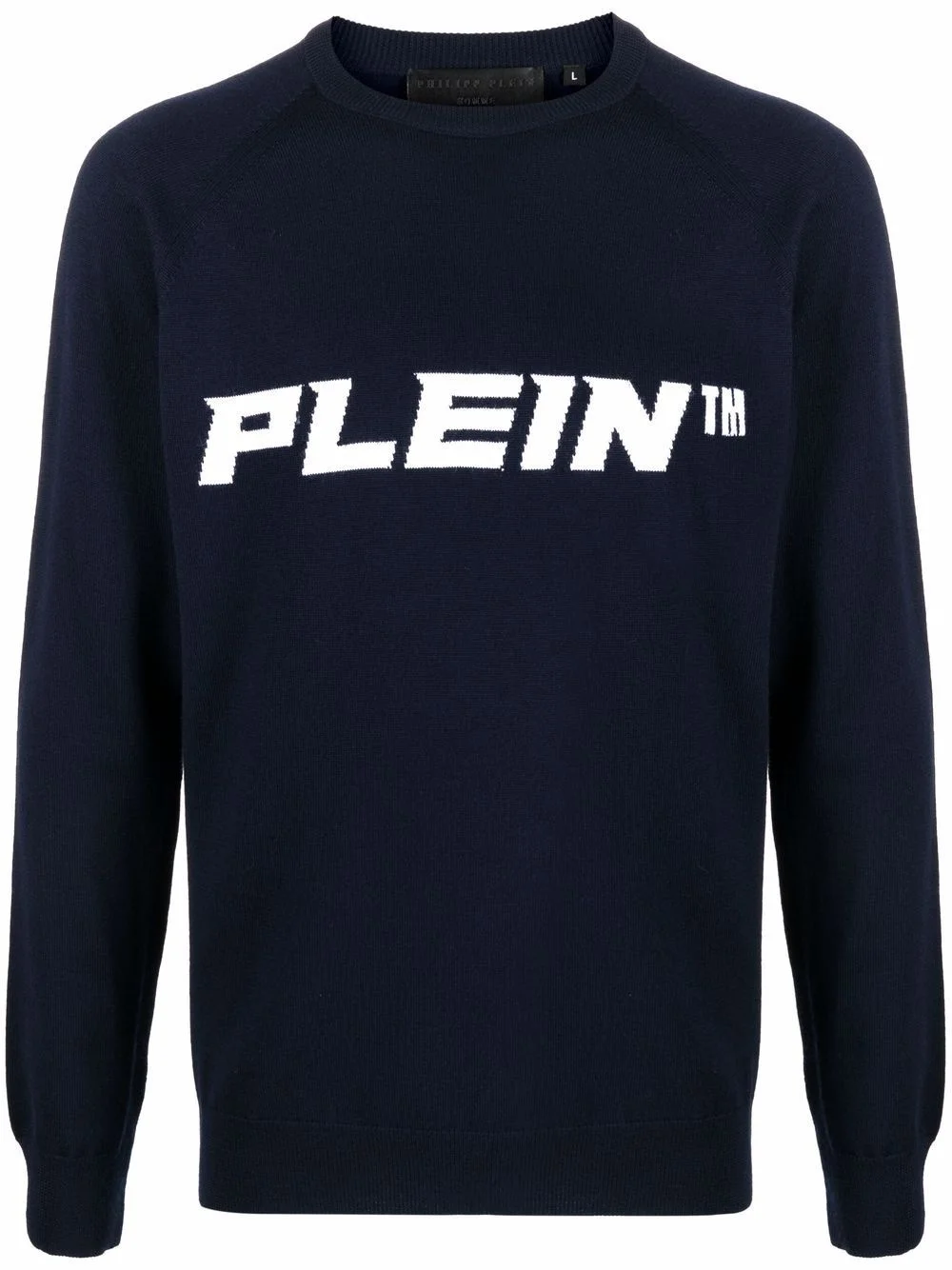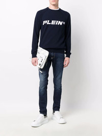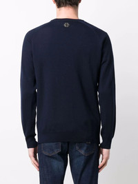 logo-print jumper dark blue wool ribbed detailing logo print to the front round neck long sleeves straight hem Imported Composition Wool 100% SIZE & FIT Model measurements Height 6 ft 1 in(1.86 m) Bust/Chest 38.58 in(98 cm) Hips 38.18 in(97 cm) Waist 27.95 in(71 cm) FittingInformation This piece fits true to size. We recommend you get your regular size Cut for a relaxed fit Made with a mid-weight fabric Washing instructions Hand Wash