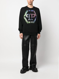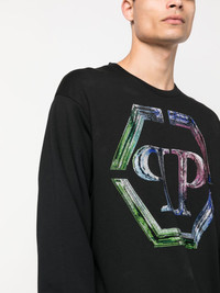 logo-print long-sleeved sweatshirt Highlights - Black/multicolour - Cotton blend - Stretch-design - Logo print to the front - Round neck - Long sleeves - Ribbed cuffs and hem - Straight hem Imported Composition Cotton 75%, Polyester 20%, Elastane 5% SIZE & FIT Model measurements Height 6 ft 1 in(1.85 m) Bust/Chest 35.82 in(91 cm) Hips 37.79 in(96 cm) Waist 29.13 in(74 cm) FittingInformation Designed for a relaxed fit, this piece allows for comfort and movement when worn Made from a midweight non-stretch fabric, this piece offers minimal elasticity when worn This piece fits true to size – take your usual size Washing instructions Hand Wash