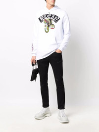 logo-print pullover hoodie bright-white cotton logo print to the front classic hood long sleeves ribbed hem Imported Composition Cotton 100% SIZE & FIT Model measurements Height 6 ft 2 in(1.89 m) Bust/Chest 37.79 in(96 cm) Hips 37 in(94 cm) Waist 29.92 in(76 cm) FittingInformation This piece fits true to size. We recommend you get your regular size Cut for a relaxed fit Made with a mid-weight fabric Washing instructions Hand Wash