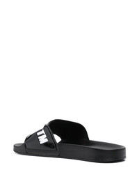 logo-print slides logo print to the front open toe slip-on style flat rubber sole Imported Composition Outer: Polyurethane 100% Lining: Polyurethane 100% Sole: Rubber 100% SIZE & FIT Measurement HEEL 0.78 in(2 cm) Sole height 0.59 in(1.5 cm)