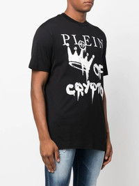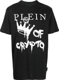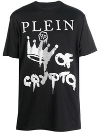 logo-print short-sleeve T-shirt from PHILIPP PLEIN featuring jet black, cotton, logo print to the front, logo patch to the rear, round neck, short sleeves and straight hem. Imported Composition Cotton 100%