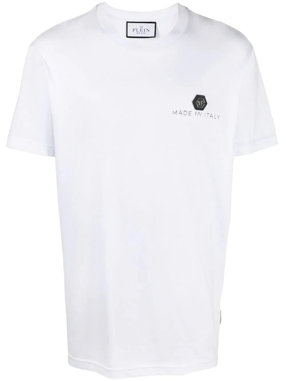 logo-print short-sleeve T-shirt cloud white cotton jersey knit logo patch to the front logo print to the rear round neck short sleeves straight hem Made in Italy Composition Cotton 100% SIZE & FIT Model measurements Height 6 ft 2 in(1.87 m) Bust/Chest 36.41 in(92.5 cm) Hips 37 in(94 cm) Waist 29.52 in(75 cm) Washing instructions Hand Wash