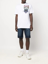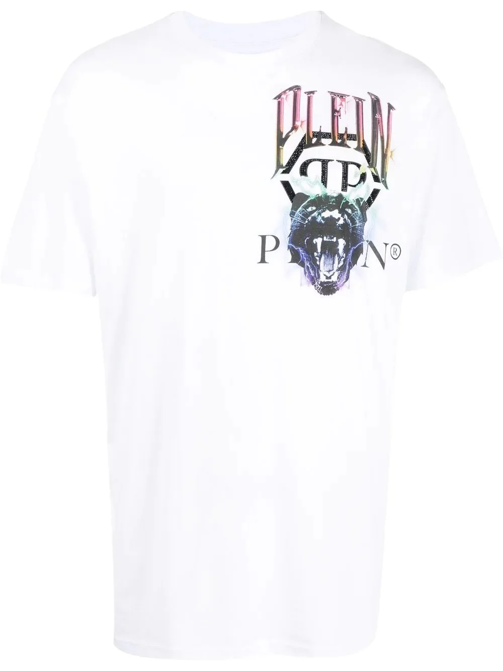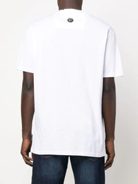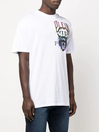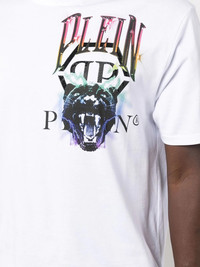 logo-print short-sleeved T-shirt logo-print short-sleeved T-shirt from PHILIPP PLEIN featuring white/multicolour, cotton, graphic print at the chest, logo print to the front, crew neck, short sleeves and straight hem. Imported Composition Cotton 100% SIZE & FIT Model measurements Height 6 ft 0 in(1.84 m) Bust/Chest 35.82 in(91 cm) Hips 37 in(94 cm) Waist 28.34 in(72 cm) FittingInformation This piece fits true to size. We recommend you get your regular size Cut for a relaxed fit Made with a mid-weight fabric Washing instructions Hand Wash