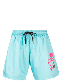 logo-print swim shorts Highlights - Turquoise blue-green - Logo patch to the front - Elasticated drawstring waistband - Straight leg - Above-knee length - Be mindful to try on swimwear over your own garments. Imported Composition Cotton 75%, Polyester 20%, Spandex/Elastane 5% Washing instructions Hand Wash