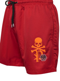 logo-print swim shorts Highlights - Wine red/pumpkin orange - Logo print to the side - Drawstring fastening waist - Mid-rise - Slip pockets to the sides - Applique logo - Thigh-length - Be mindful to try on swimwear over your own garments. Imported Composition Polyester 100%