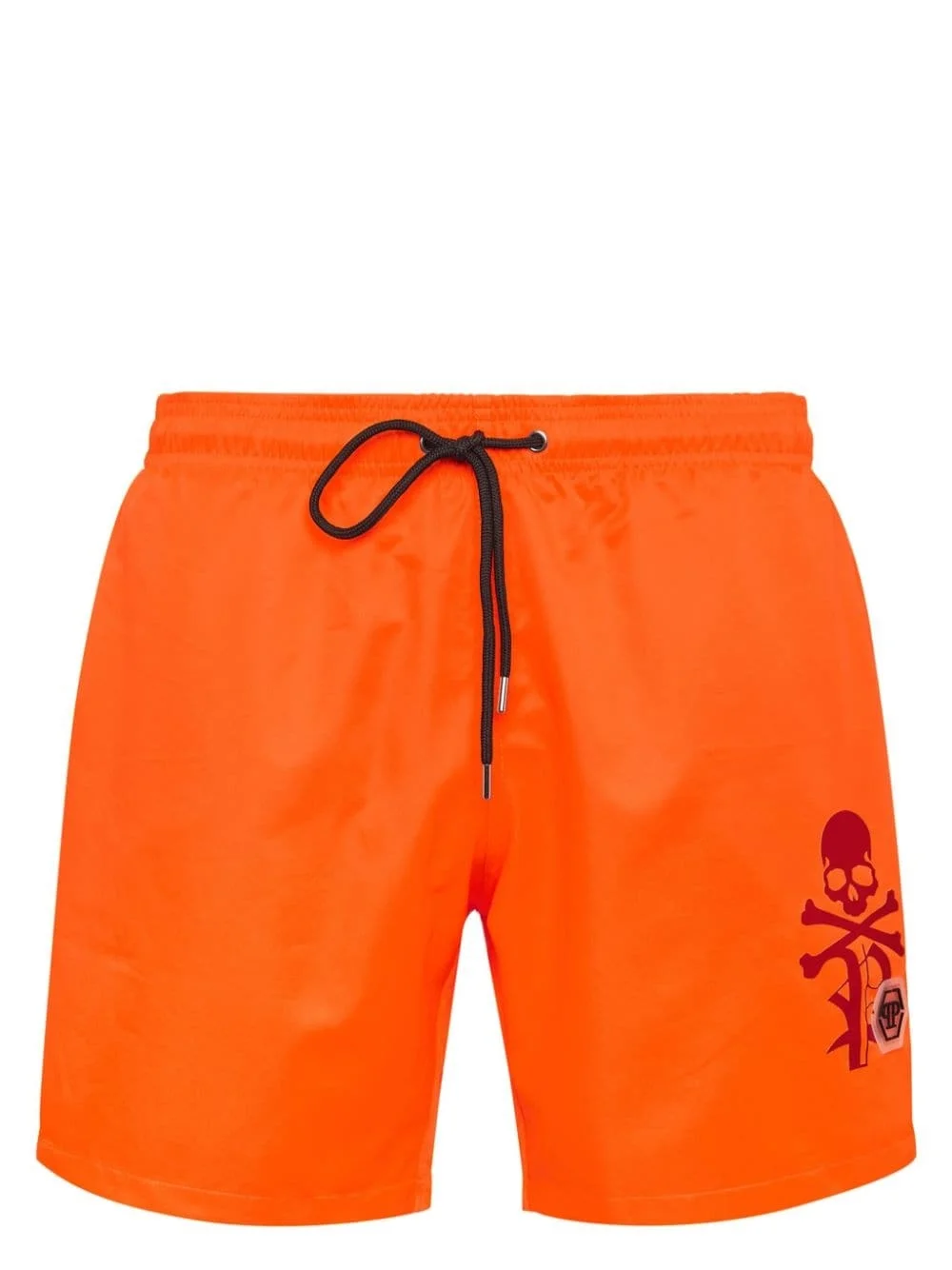 logo-print swim shorts Highlights - Lava orange - Wine red - Logo print to the side - Drawstring fastening waist - Slip pockets to the sides - Applique logo - Thigh-length - Be mindful to try on swimwear over your own garments. Imported Composition Polyester 100%