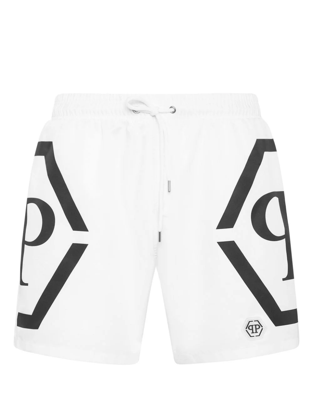logo-print swim shorts Highlights - White/black - Logo print to the side - Drawstring fastening waist - Slip pockets to the sides - Applique logo - Thigh-length - Be mindful to try on swimwear over your own garments. Imported Composition Polyester 100%