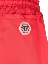 logo-print swimming shorts red/black logo print to the side logo patch to the rear drawstring fastening waist two side slit pockets rear welt pocket Be mindful to try on swimwear over your own garments. Imported Composition Polyester 100% Washing instructions Hand Wash