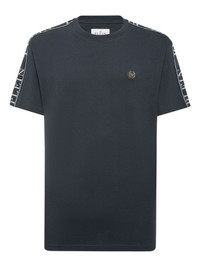 logo-print T-shirt Highlights - Navy blue - Logo print on shoulders - Round neckline - Short sleeves - Logo patch at the chest Imported Composition Cotton 100%, Polyester 100% Washing instructions Read Manufacturer Guidelines