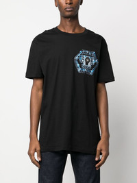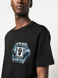 logo print T-shirt black/multicolour cotton graphic print at the chest logo print to the rear crew neck short sleeves straight hem Made in Italy Composition Cotton 100% SIZE & FIT Model measurements Height 6 ft 1 in(1.85 m) Bust/Chest 31.88 in(81 cm) Hips 33.07 in(84 cm) Waist 26.77 in(68 cm) FittingInformation This piece fits true to size. We recommend you get your regular size Cut for a relaxed fit Made with a mid-weight fabric Washing instructions Machine Wash