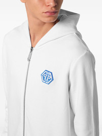 logo-print zip-up hoodie Highlights - White - Logo patch at the chest - Front zip fastening - Long sleeves - Classic hood - Ribbed cuffs and hem - Logo print at the rear Imported Composition Cotton 88%, Polyester 12% Washing instructions Read Manufacturer Guidelines