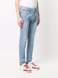 logo slim-fit jeans blue stretch cotton logo patch to the rear slim cut button fly fastening belt loops classic five pockets Imported Composition Outer: Cotton 98%, Spandex/Elastane 2% Lining: Polyester 65%, Cotton 35% SIZE & FIT Model measurements Height 6 ft 1 in(1.86 m) Bust/Chest 38.58 in(98 cm) Hips 38.18 in(97 cm) Waist 27.95 in(71 cm) Washing instructions Hand Wash