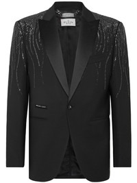 Lord beaded blazer Philipp Plein's Lord blazer combines classic tailoring influences with the brand's extravagant aesthetic. The single-breasted silhouette is accented with satin peak lapels and silver-tone beads throughout. Highlights - Black - Satin trim - Bead embellishment - Logo plaque - Peak lapels - Front button fastening - Jetted chest pocket - Two front welt pockets - Long sleeves - Buttoned cuffs - Central rear vent - Straight hem Made in Italy Composition Lining: Viscose 51%, Acetate 49% Outer: glass 100%, Polyester 53%, Virgin Wool 43%, Elastane 4%