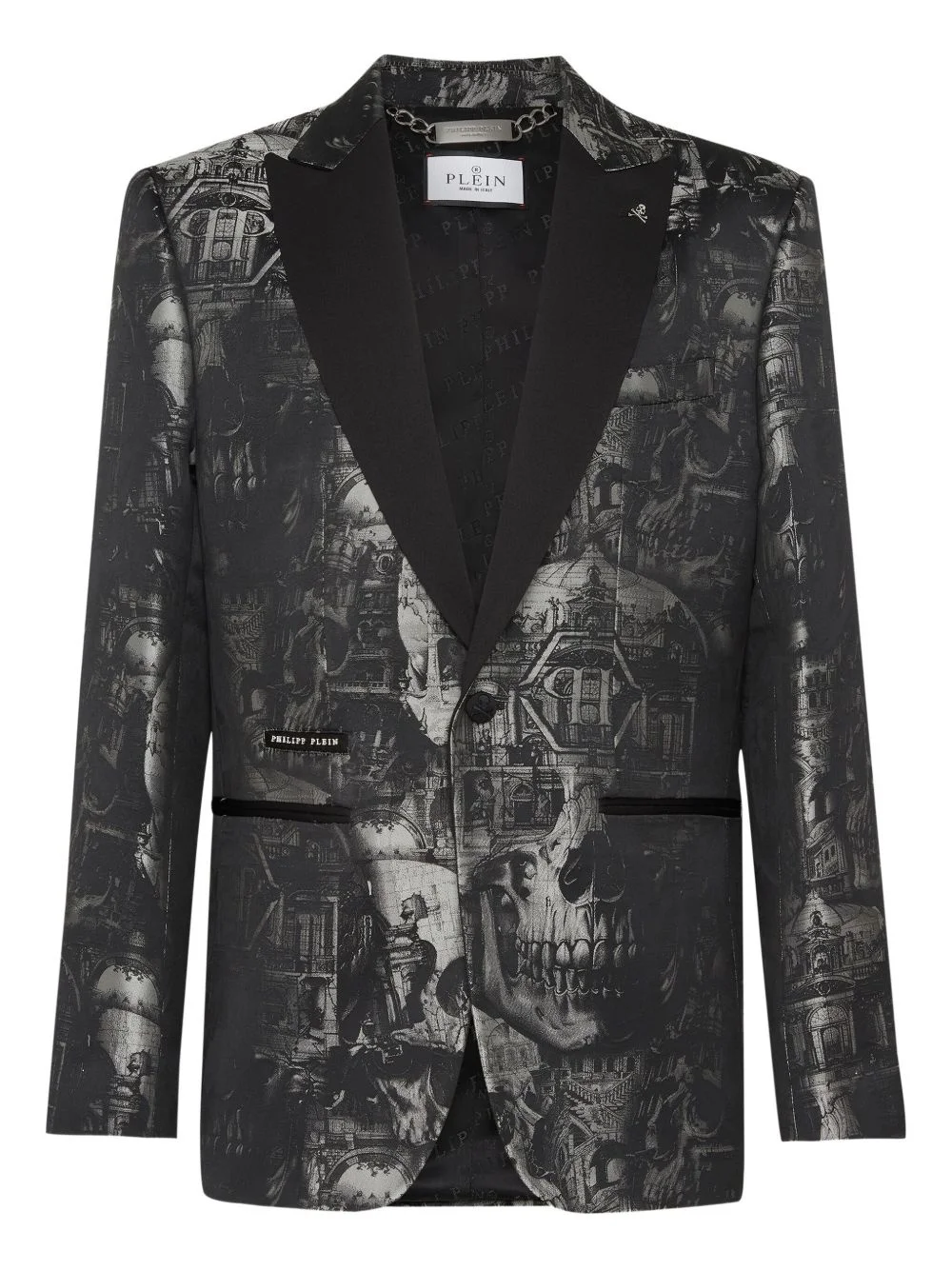 Lord Fit Skull blazer Highlights - Black - Front button fastening - All-over graphic print - Two front welt pockets - Buttoned cuffs Made in Italy Composition Outer: Polyester 100% Lining: Polyester 100%, Viscose 51%, Acetate 49%