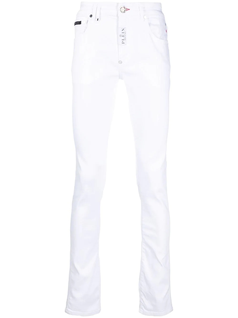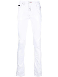 low-rise skinny jeans Highlights - White - Stretch-cotton - Denim - Logo plaque - Appliquã© logo - Low-rise - Belt loops - Concealed fly and button fastening - Classic five pockets - Skinny cut Made in Italy Composition Outer: Cotton 99%, Elastane 1% Lining: Polyester 65%, Cotton 35%
