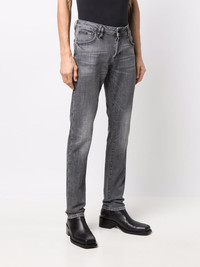 low-rise slim-fit jeans iron-grey stretch-cotton washed tonal stitching low-rise belt loops front button and zip fastening classic five pockets slim cut Imported Composition Lining: Polyester 65%, Cotton 35% Outer: Cotton 98%, Spandex/Elastane 2% Washing instructions Dry Clean Only