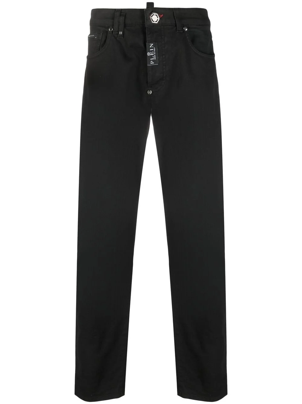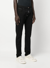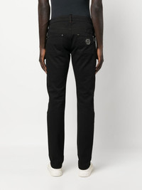low-rise straigh-leg jeans black stretch-cotton denim logo patch to the front embroidered logo straight leg low-rise front button and zip fastening classic five pockets Made in Italy Composition Outer: Cotton 97%, Spandex/Elastane 3% Lining: Cotton 100% SIZE & FIT Model measurements Height 6 ft 2 in(1.87 m) Bust/Chest 36.41 in(92.5 cm) Hips 37 in(94 cm) Waist 29.52 in(75 cm) FittingInformation This piece fits true to size. We recommend you get your regular size Cut for a slim fit Made with a mid-weight stretch fabric Washing instructions Dry Clean Only