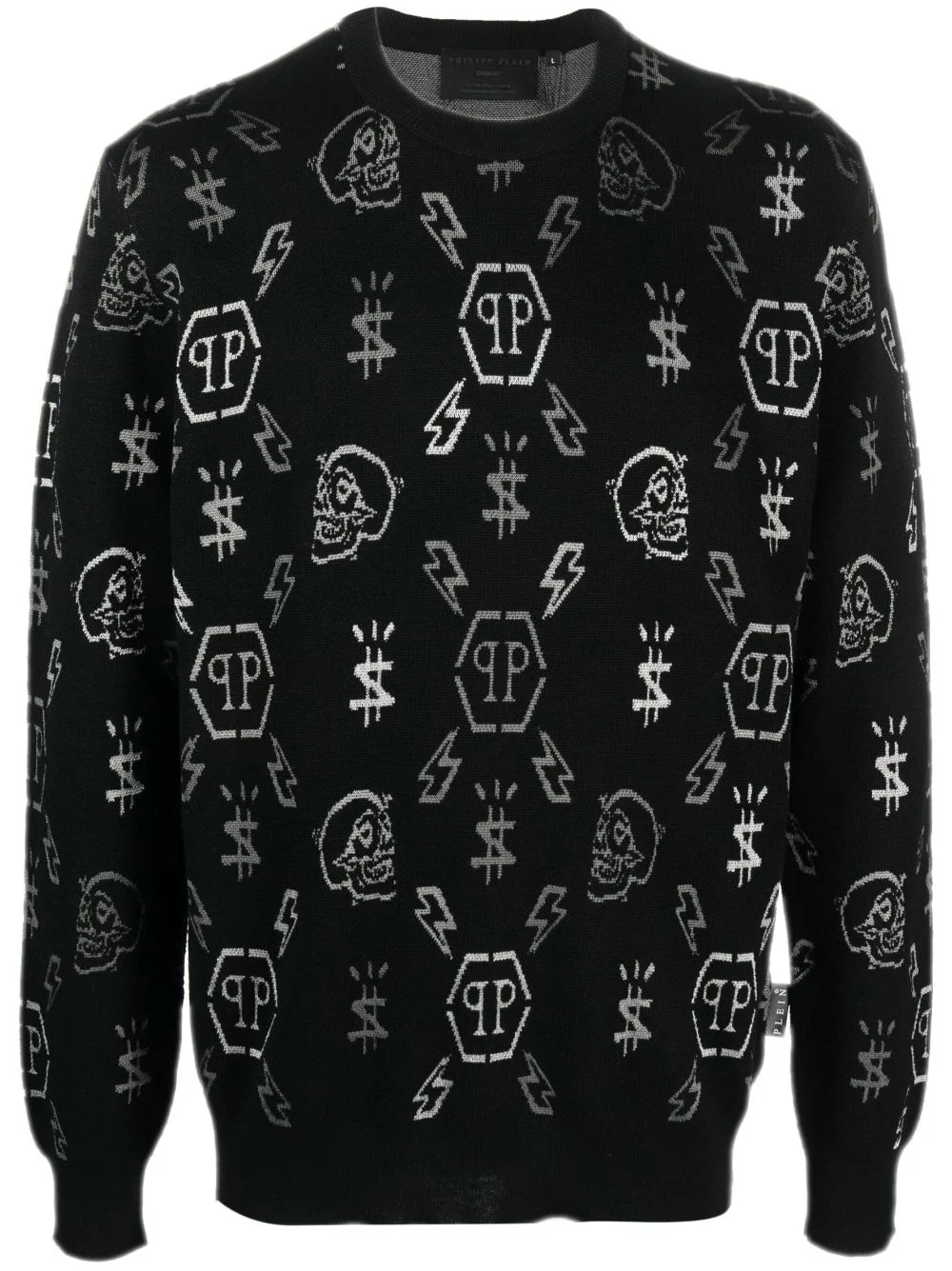 LS jacquard monogram jumper Highlights - Black/grey - Wool - Knitted construction - Monogram jacquard - Round neck - Long sleeves - Straight hem Imported Composition Wool 100%, Viscose 100% SIZE & FIT Model measurements Height 6 ft 2 in(1.88 m) Bust/Chest 36.61 in(93 cm) Hips 35.82 in(91 cm) Waist 27.95 in(71 cm) FittingInformation Designed for a slim fit, offering a comfortable fit that sits just away from the body The ribbed hem offers a close, comfortable fit Made with a midweight knit, this piece offers some stretch This piece fits true to size – take your usual size