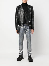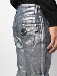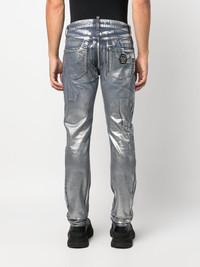 metallic-effect straight-leg jeans Highlights - Electric blue - Cotton blend - Denim - Metallic effect - Logo tag - Logo patch to the rear - Belt loops - Front button fastening - Classic five pockets - Straight leg Made in Italy Composition Outer: Cotton 98%, Elastane 2% Lining: Polyester 65%, Cotton 35% SIZE & FIT Model measurements Height 6 ft 2 in(1.88 m) Bust/Chest 37.79 in(96 cm) Hips 35.82 in(91 cm) Waist 29.92 in(76 cm) FittingInformation Designed with a straight leg, these jeans allow for an unrestricted and comfortable fit over the leg Constructed from stretch denim, this piece offers a stretch fit with durability This piece fits true to size – take your usual size Washing instructions Read Manufacturer Guidelines