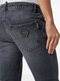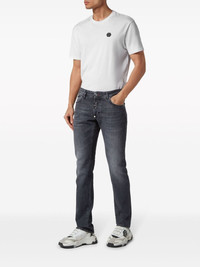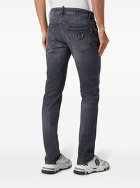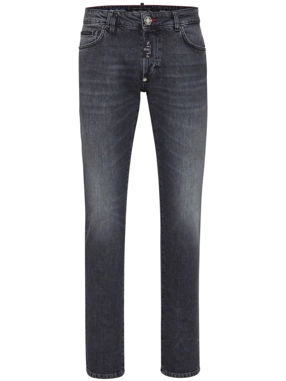 Super straight-leg jeans Highlights - Dark grey - Stretch-cotton - Denim - Faded effect - Whiskering effect at the thighs - Logo patches to the front - Embroidered motif - Silver-tone logo plaque - Mini logo tag - Straight leg - Low-rise - Pp hexagon-shaped button - Button fly fastening - Belt loops - Classic five pockets - Straight hem Made in Italy Composition Outer: Cotton 98%, Elastane 2% Lining: Polyester 65%, Cotton 35% Washing instructions Read Manufacturer Guidelines