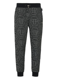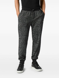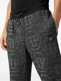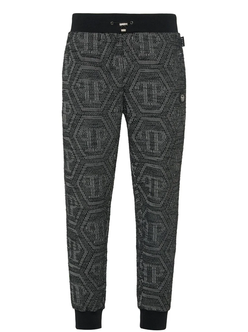 monogram-jacquard track pants Highlights - Black - Drawstring fastening waist - Two side slit pockets - Rear welt pocket - Ribbed ankles Imported Composition Cotton 50%, Polyester 50%