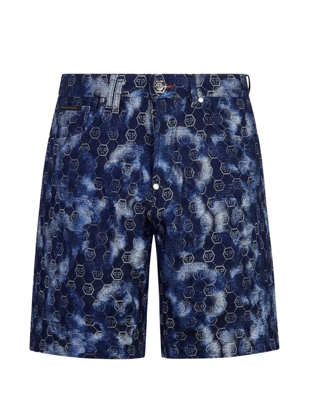 monogram-pattern denim shorts Highlights - Navy blue - Monogram pattern - Bleach effect - Denim - Belt loops - Button fly fastening - Five pockets Made in Italy Composition Cotton 54%, Polyester 46% Washing instructions Read Manufacturer Guidelines