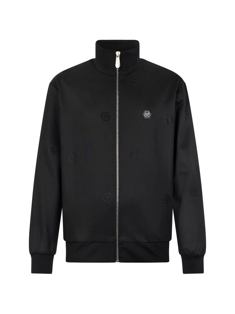 monogram-pattern sport jacket Highlights - Black - Monogram pattern - Glass embellishment - Zip fastening - High neck - Ribbed hem Imported Composition glass 100%, Polyester 60%, Cotton 40% Washing instructions Read Manufacturer Guidelines